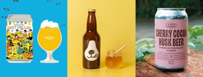 「REVO BREWING」「里武士馬車道」「横浜ビール」等の限定缶ビールを販売するほか、普段は直営店でしか販売されていない地元ブルワリーのグッズも並びます。