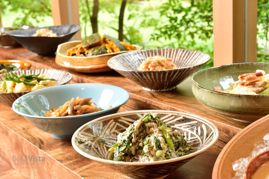 約20種類の「旬皿」を愉しめる朝食、一品一品を丁寧にご提供する和会席ディナーなど、‘地産地消’をコンセプトに、“料理は引き算、器は足し算”の精神のもと、素材本来の持ち味をめいっぱい引き出し、日本料理の素晴らしさを伝えています。