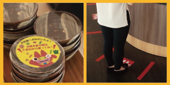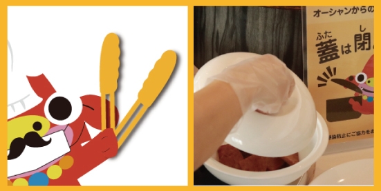 ・ご利用される皆様に手袋をお渡しします。着用して料理の取り分けをお願いします。