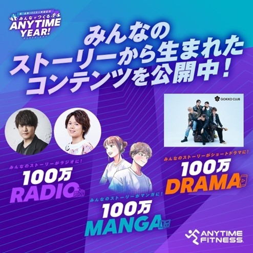 株式会社Fast Fitness Japan(本社:東京都新宿区 代表取締役社長:山部清明)の中核事業であり、国内マスターフランチャイジーとして、全国直営店舗の運営及びフランチャイズ展開を行う24時間年中無休フィットネスジム「ANYTIME FITNESS(エニタイムフィットネス)」は、2025年5月より始動した「エニタイムYEAR」のキャンペーン第1弾『エニタイムからはじまる物語を、シェアしよう。ー 100万人ストーリーズ・プロジェクト』にて募集したエピソードをコンテンツ化しました。コンテンツは、8月から順次公開中です。