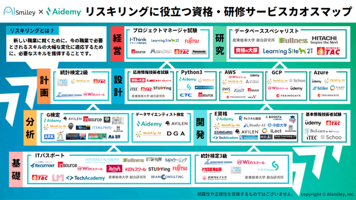 AIsmileyとAidemy、リスキリングに役立つ資格・研修サービスカオスマップを公開!