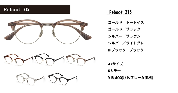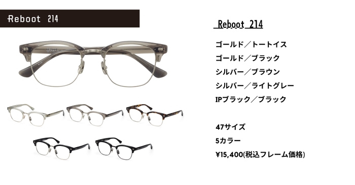 2009年に、パリミキのトレンドラインの1つとして新登場した「EDGE Reboot」が、2022年にリブランディングし「Reboot」として再登場しました。クラシカルなデザインを今のトレンドの要素を盛り込みながらリブート(再起動)させるというコンセプトは変わらず展開しています。リブランディング後、4回目のコレクションとなる本作は、オールプラスチックモデルが3モデル、コンビネーションモデルが2モデルの計5モデルを新型としてリリースしました。