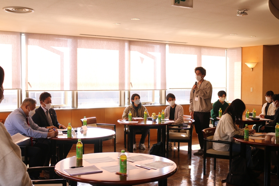 「若者世代にとって魅力的な『まち』とは」をテーマに、地域貢献や、まちづくりに興味のある1年生から4年生までの学生15名が参加し、市長に直接と直接意見交換を行いました。学生からの主な意見は大きく分けて「子育て支援」「観光」「SNSによる情報発信」の3つでした。