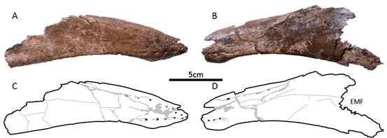 発見された化石(OUSM-FV-002)は、オルニトミモサウルス類の下あご(歯骨)です 。全長約17cmで、歯がない(無歯)くちばしを持っていたことが分かります 。最大の特徴は、骨の高さが非常に大きいことです 。その比率は、アジアのデイノケイルス・ミリフィクスに匹敵する一方、北米で一般的なオルニトミムス科の恐竜(ストルティオミムスなど)が持つ、シャベルのように先端が広がった華奢なあごとは明確に異なります 。このことから、本標本はデイノケイルス科に属する可能性が考えられます。