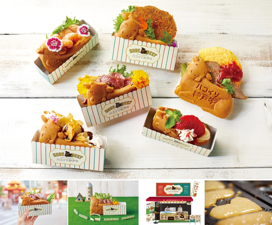 「たい焼き」ならぬ「神戸牛やき」は牛のフォルムにこだわって焼き型を特注。生地はカステラのような柔らかさでほんのり甘く、おかず系具材とのコンビネーションは韓国で人気の「焼きサンド」のように、「甘じょっぱい」美味しさを目指しました。