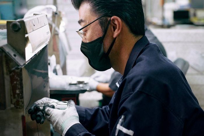 高品質な日本製、自社工場で素材調達までトレーサビリティがしっかり取れる環境で生産を行っています。世界で初めてチタン製のメガネフレームを世に出した歴史を持つ自社工場で生産されるフレームは、軽量、高強度なチタン素材を使用し、1つ1つ丁寧に作られています。