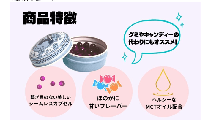 グレープミント味で美味しく食べられるCBDのため、デザートがわりにもオススメ。