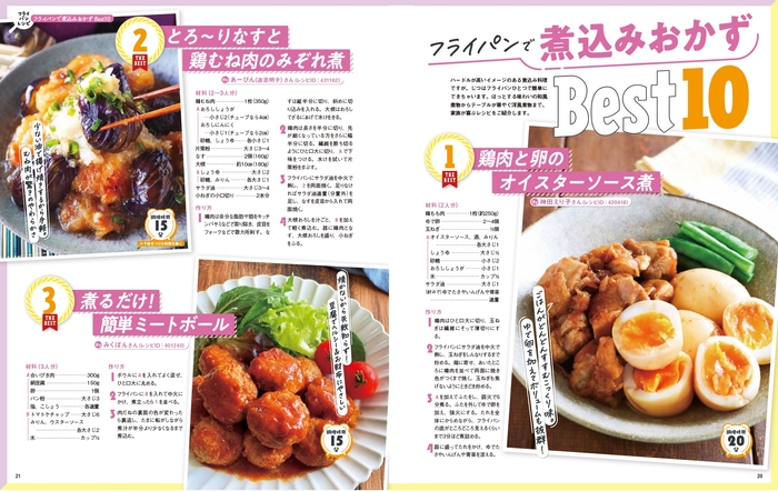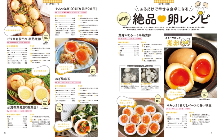 また、節約の強い味方、卵レシピも紹介。煮卵、卵焼きなどの定番おかずのバリエーションがわかるので、いつものおかずもマンネリ知らずで食べられます。そのほかアイデア卵おかずも紹介。