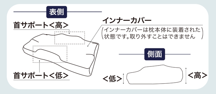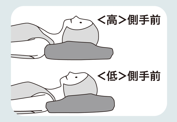 「首サポート」に首を乗せるようにして寝る。好みに合わせて高い側または低い側を手前にして使用