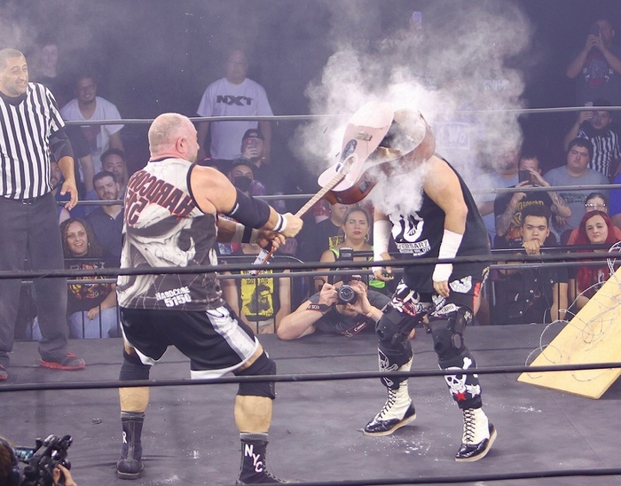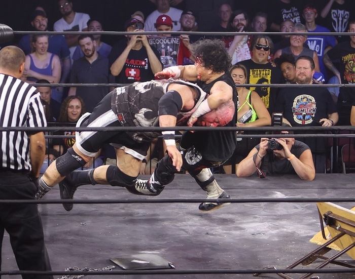 米国フィラデルフィア州の2300アリーナ(旧ECWアリーナ)で、米国現地時間8月6日19時半から、「バトルグランド・チャンピオンシップ」が開催され、日本から大仁田厚が参戦し、チェーンソートニーとタッグを組みブリー・レイ(元ECWとWWE所属)、PCO組と対戦した。