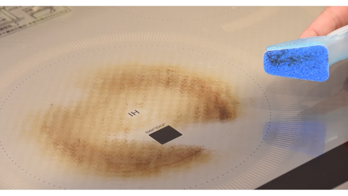 IHの天板は拭き取りやすくて便利ですが、 器具の接触でキズついたり、吹きこぼれに熱が加わってコゲついたり、意外と汚れるシーンがあります。