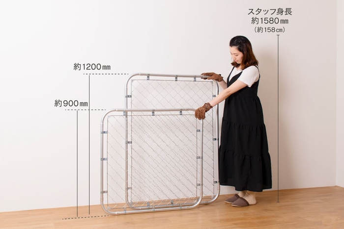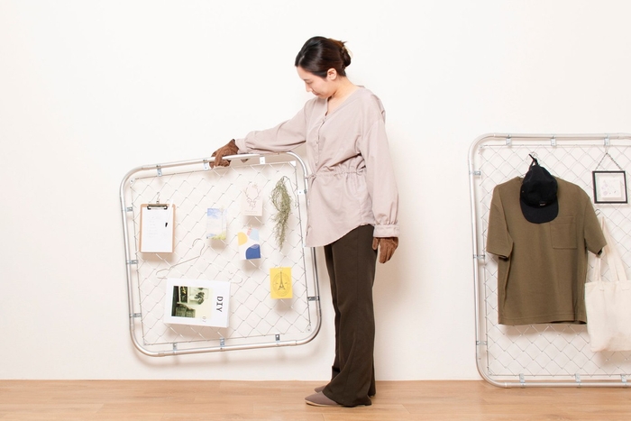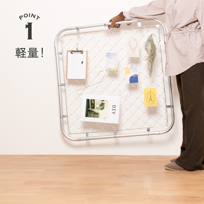 金網はポスターのようにくるくると丸められ、フレーム部分はコーナーをはずすことでかなりコンパクトになります。アメリカンな雰囲気を演出できる