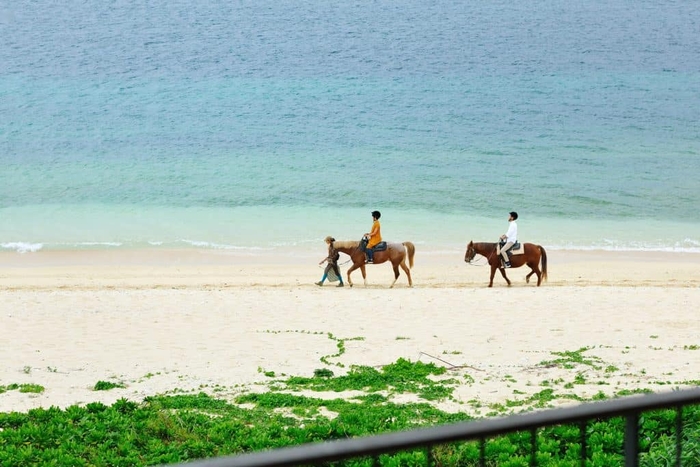 かつての読谷村には沖縄で最も広い馬場があり、歩くリズムや馬の姿勢の優雅さを競う琉球競馬が盛んでした。この歴史にちなみ、星のや沖縄では、読谷村の美しい海を眺めながら優雅に楽しむ乗馬体験を用意しています。心地よい海風を感じながら、ゆっくりと浜辺を歩みます。