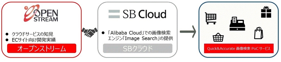 まずは2019年5月8日より、リテール(小売)業界向けに、「Image Search」の高速かつ高精度な画像解析技術を簡単に体感できる「Quick&Accurate 画像検索 PoC サービス※1」を、オープンストリームを通じて提供開始します。このサービスは、2019年5月8日(水)~10日(金)に東京ビッグサイトで開催される「クラウドコンピューティングEXPO【春】※2」のSBクラウドのブースで展示する予定です。