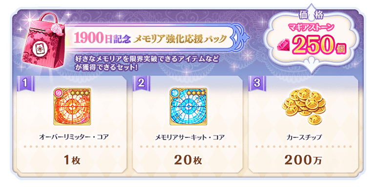※「1900日記念 メモリア強化応援パック」のご購入はおひとり様2回までです。