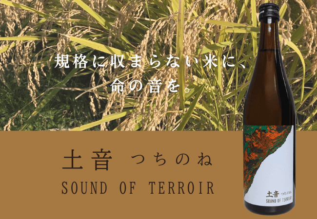 「土音(つちのね)sound of terroir」は、粒の形状やサイズが基準を満たさない等外米を原料に使用した日本酒です。品質に問題はないにもかかわらず、流通から外れ廃棄や飼料化される米に光を当て、農家の努力と土地の恵みを酒として活かすことを目指しています。