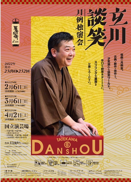 夢空間(東京都千代田区)主催による『立川談笑 月例独演会 其の232回』が2022年4月2日 (土)に国立演芸場(東京都千代田区)にて上演されます。チケットはカンフェティ(運営:ロングランプランニング株式会社、東京都新宿区、代表取締役:榑松 ⼤剛)にて発売中です。