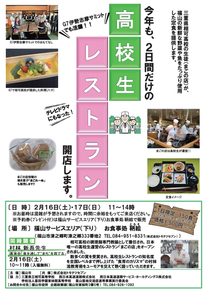 三重県立相可高校 調理クラブの生徒がやってきて、高校生レストラン「まごの店」を福山にて、2日間限定で開店します。