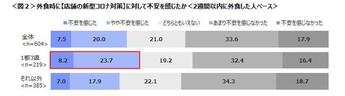 外食に行きつつも、3割弱が【店舗の新型コロナ対策】に対して不安を感じている