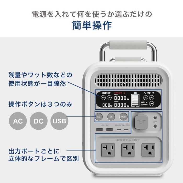 ・圧巻の大容量2,258Wh / 定格出力 2,000W(最大4,000W)