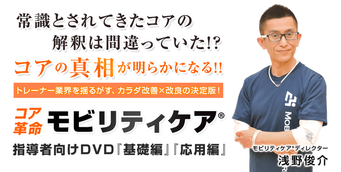 この「コア革命 モビリティケア®応用編」では、基礎編の内容をベースに常識とされてきたストレッチの誤りを暴きつつ、エクササイズ誘導法に発展させています。