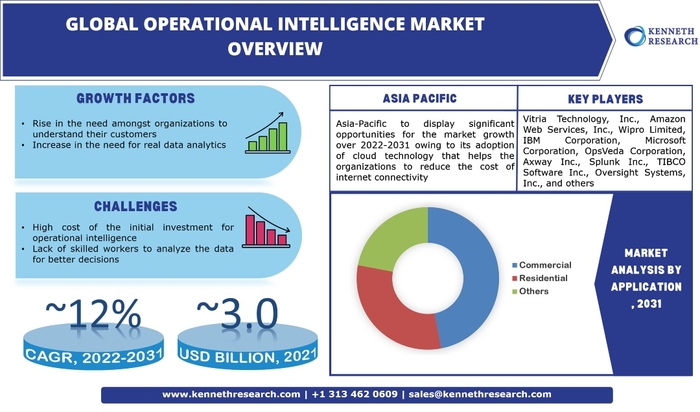 世界のオペレーショナルインテリジェンス市場の成長は、組織が2022年から2031年の間に約12%のCAGRで顧客を理解する必要性の高まりによって推進される