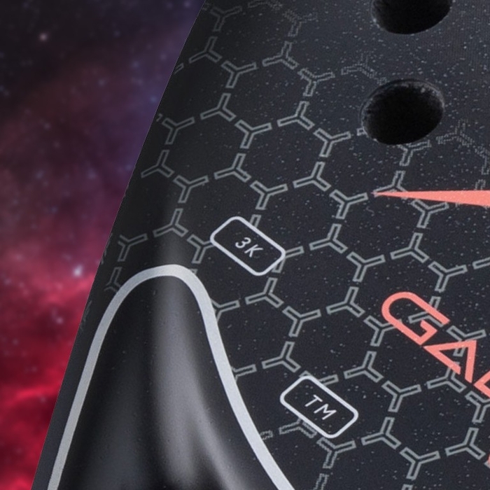 表面カーボンには3Kカーボンを採用。これにより、従来の「GALACTICA」シリーズとは異なる、より柔らかい打球感を実現しました。初心者や女性プレーヤーにも優しい打球感で、快適なプレーをサポートします。