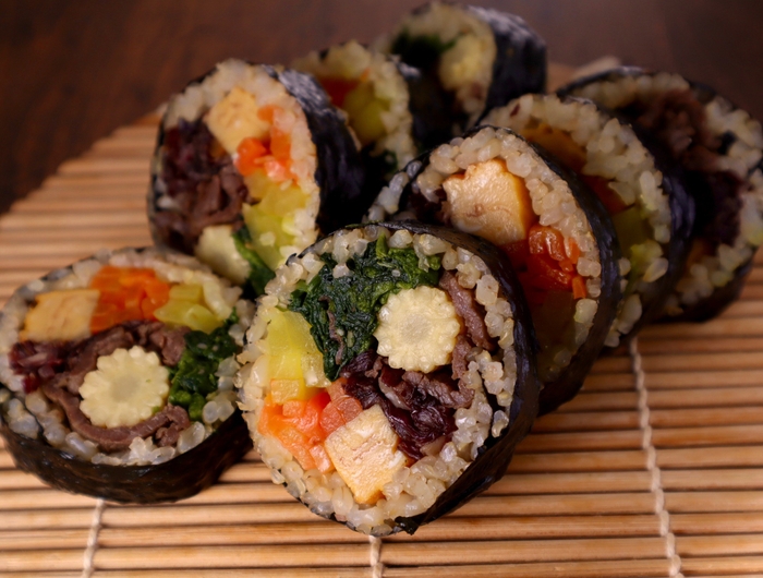 お店のイチオシは、自由にトッピングが選べる「カスタムキンパ」。白米・玄米・もち黒米の3種類のお米からベースを選び、メインの具材も好みに合わせてカスタマイズできます。人気メニューは「アボカドクリームチーズキンパ」。ヘルシーでありながらボリュームもあり、見た目もおしゃれな一品として、若い世代を中心に注目を集めています。