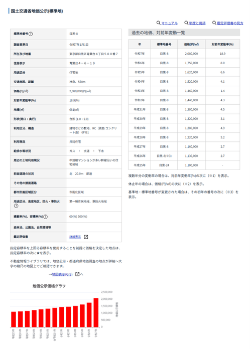 その中で、東京23区内の目黒区青葉台(標準地「目黒-8」)では、上昇率が18.9%でした。