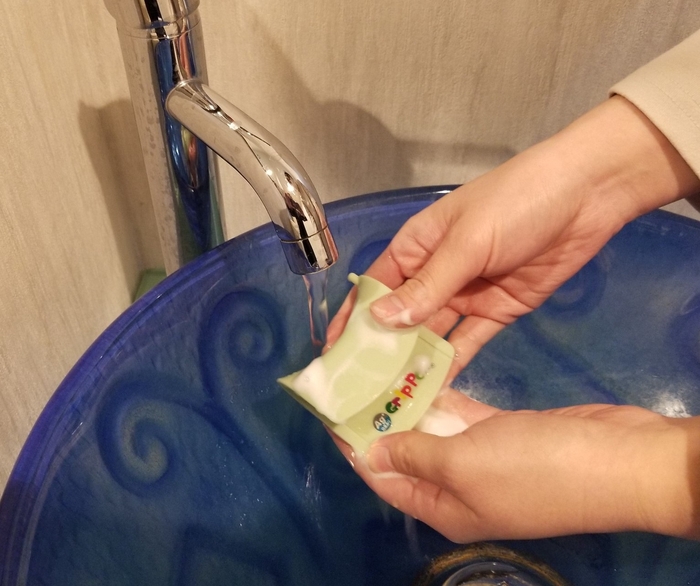 手洗いついでにハンドソープで洗ってもOK。