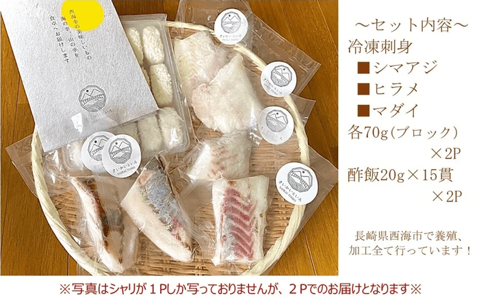 こだわった餌、養殖方法で丁寧に育てられたシマアジ、ヒラメ、鯛です!解凍後、お好みの厚さにスライスしてお寿司を楽しめます!