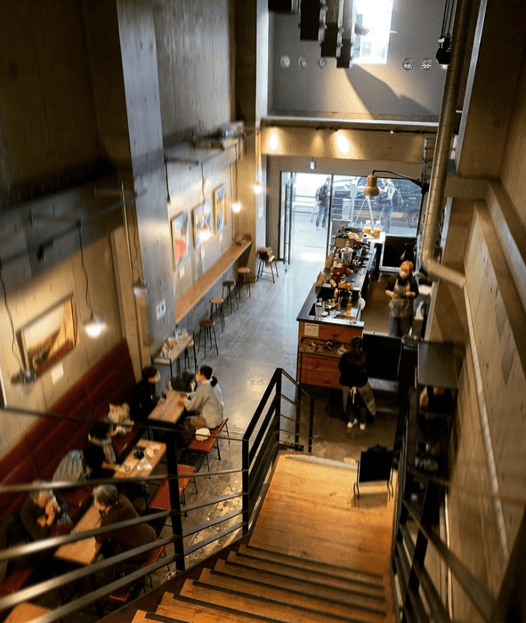 1階はカフェ、2階はインテリアショールームという複合施設の当店。開放感のある高い天井にシックなインテリアが随所に広がり、来店するお客様の好奇心を刺激します。階段下にひっそりと置かれたJBLスピーカーの名機「Paragon(パラゴン)」が奏でる音楽は広々した空間に反響し、ゆったりとした空間を作り出しています。 建築とインテリアとコーヒーがコラボレートし織りなす複雑な味わいは、ちょっと背伸びした大人の気分にさせてくれる唯一無二のお店です