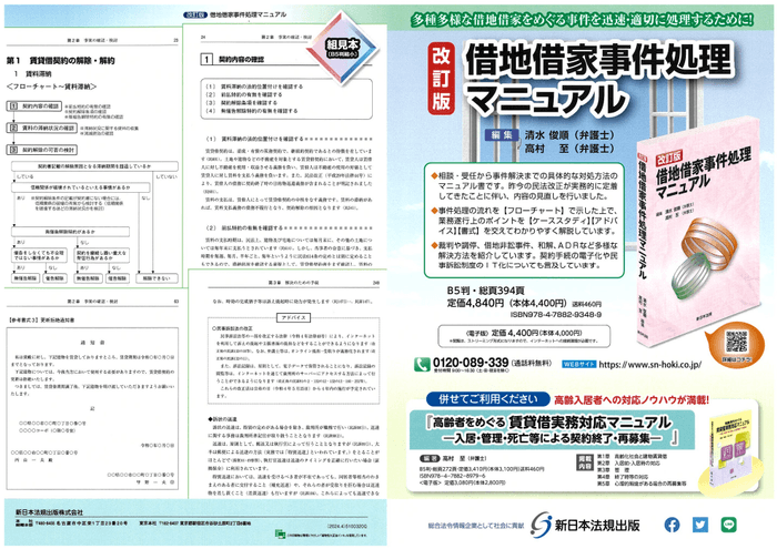 新日本法規出版株式会社(所在地:愛知県名古屋市中区栄1丁目23番20号、代表取締役:星謙一郎 (https://www.sn-hoki.co.jp/))は、「〔改訂版〕借地借家事件処理マニュアル」を2024年4月23日に発売いたしました!