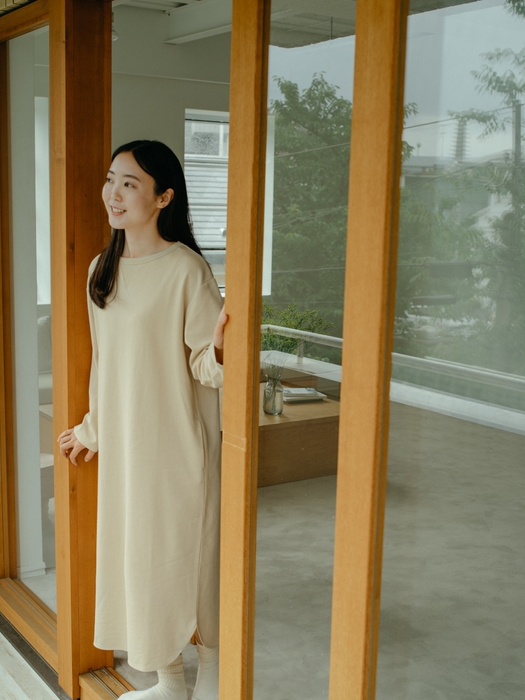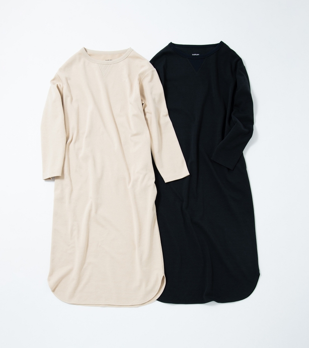 程よい厚さでソフトに身体を包み込んでくれるダンボールニット素材をリラックスフィットで仕上げた、クルーネック&イージーパンツセットアップとロング丈ワンピース。軽くて伸縮性のある素材とややゆったりとしたシルエットが相まって、リラックスムードたっぷりのアイテムです。また生地の表面がなめらかでクリーンな表情をしているので、上品に見えて普段使いもしやすいのも魅力。Repur®加工による抗菌/防臭機能付きです。