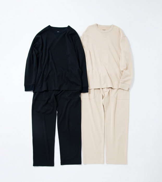 テーラードジャケット×ベイカーパンツのセットアップは、コンフォートな着心地でありながらも程よいきちんと感を備えた大人のリラックスウェア。着回しやすいデザインのテーラードジャケットとベイカーパンツは、セットアップはもちろん、セパレートでも着こなしの幅がグッと広がり、リモートワークやちょっとした外出などの様々なシーンで活躍してくれます。ジャケットの袖口と裾は生地を2枚重ねた二重仕様で、ロールアップしたときのずり落ちを軽減し、さらっと羽織ってもこなれ感も演出できるアイテムです。また睡眠時の動きや寝返りなどを考慮したパターンを採用することで、寝ている時も窮屈感を感じず、腕を上げた姿勢で寝ても裾がめくり上がることがないように設計しています。生地にRepur®加工を施し、抗菌/防臭機能付き。