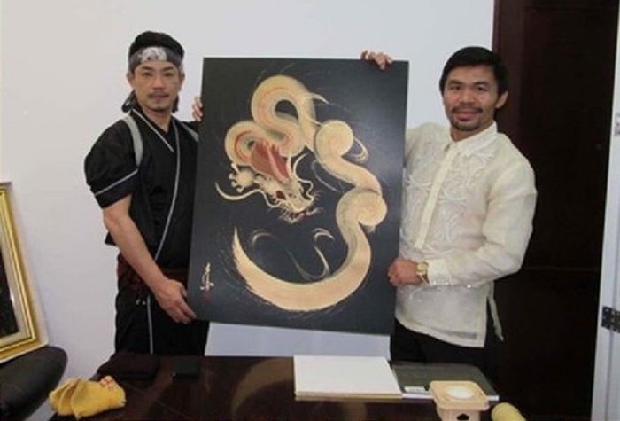 フィリピンの英雄 マニー・パッキャオ様にも京都一筆龍描画をご贈呈