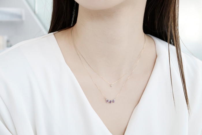 【be shy】に使用されている石はダイヤモンド、アメシスト、アクアマリン。