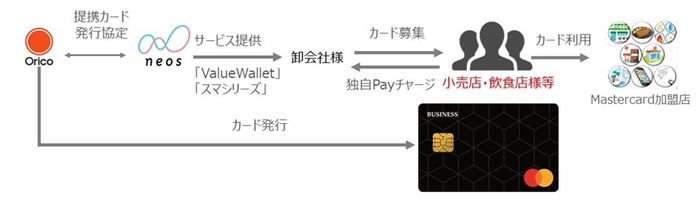 テクミラホールディングスの子会社であるネオス株式会社(本社:東京都千代田区、代表取締役 社長執行役員:池田 昌史、以下 ネオス)は、株式会社オリエントコーポレーション(本社:東京都千代田区、代表取締役社長:梅宮 真、以下「オリコ」)と提携し、個人事業主および法人代表者向けビジネスカード【Neos Business Card】(以下、本カード)の発行を開始いたしました。まず初めに、菓子・食品・飲料の卸売業を展開する株式会社タジマヤ(本社:東京都台東区、代表取締役社長:田島 康郎、以下「タジマヤ」)にて本カードを導入し、タジマヤのお客様である小売店等からの申し込みが開始されます。