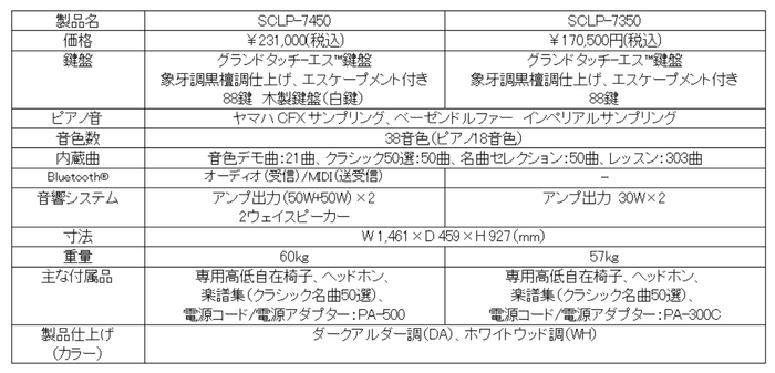 島村楽器株式会社(本社:東京都江戸川区、代表取締役社長:廣瀬利明)は、ヤマハ株式会社(本社:静岡県浜松市、代表執行役社長:中田卓也)とのコラボレーションによる電子ピアノ、ヤマハ『SCLP-7450』、『SCLP-7350』の2機種を2020年7月1日(水)、発表いたします。発売日は8月31日(月)頃を予定しています(※1)。