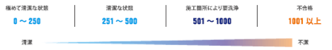 試験方法:ATPふき取り検査(A3法)※で作業前後の汚れの数値を計測したところ、作業前と比べて作業後の数値が大幅に減少しており、高い抗菌・抗ウイルス効果を生んだことが分かります。光触媒は蛍光灯などの光が当たると、抗菌・抗ウイルス作用が発生します。よって、コーティング後は日常生活を送るだけで、この数値はどんどん下がっていきます。