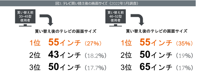・買い替え時には1クラス大きい画面の製品を選ぶ傾向にある。