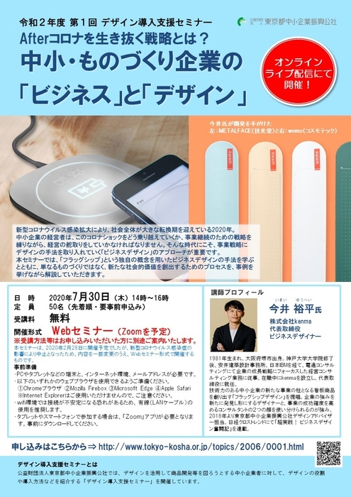 【7/30開催 無料Webセミナー】 Afterコロナを生き抜く戦略とは? 中小・ものづくり企業の「ビジネス」と「デザイン」