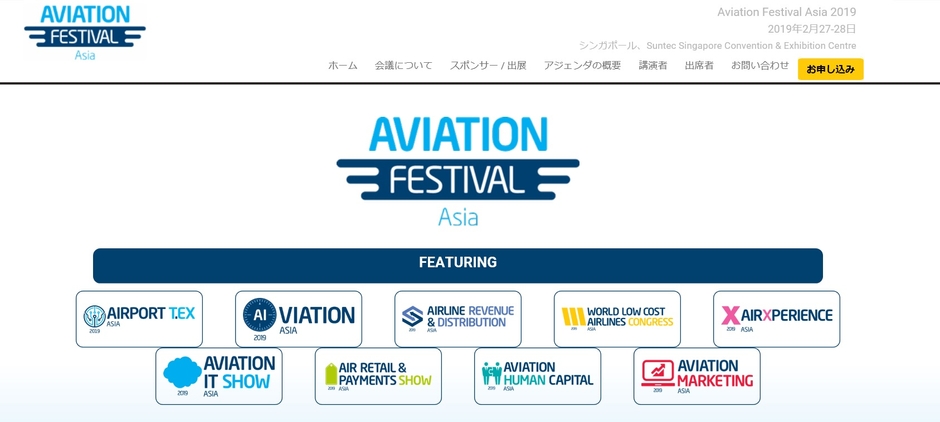 2019年のAviation Festival Asiaには、航空会社や空港運営会社の幹部およそ1,000人を含む2,500人以上の出席者と180人を超える講演者が集まる見通しであり、展示会場にはおよそ100の展示ブースが設置されます。