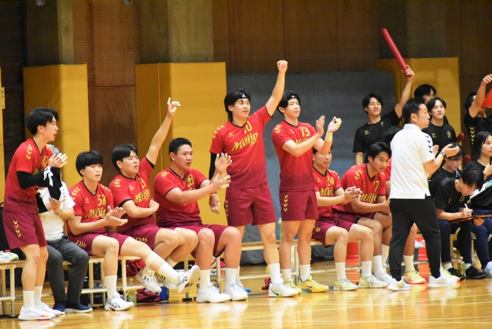 MEIJO SPORTS PROJECT(通称:MSP)が主催する本学と中京大学のハンドボールのホームゲームが10月15日、天白キャンパスの新体育館で開催され、約230人の観客が応援に駆け付けました。これまで本学としてホームゲームを実施したことはありますが、学生主催でのホームゲームを企画・運営するのは初めてで、新たなスポーツの魅力発信の機会となりました。