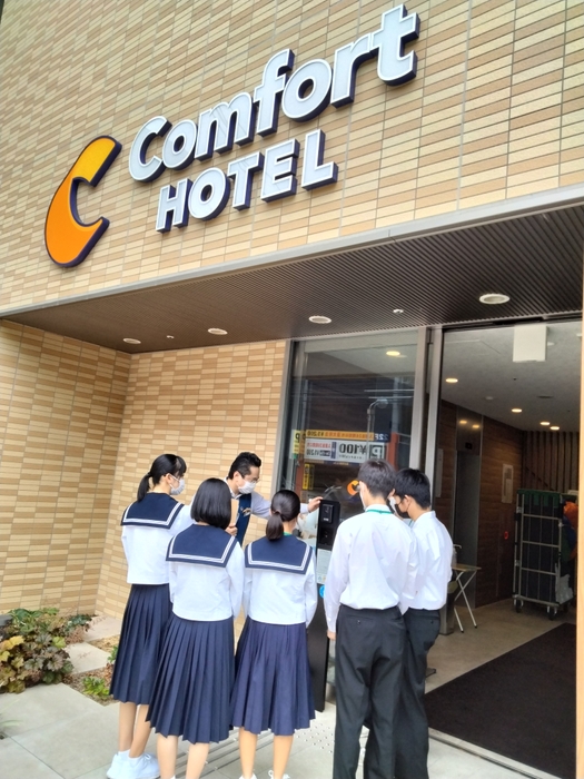 当社では、運営ホテルがある地域の教育委員会を通じ、中高生を対象とした「職場体験プログラム」の一環として、実習生の受け入れを行っています。職場体験では、ホテル見学、基本的なホテル業界・サービス接遇の学習、ホテル巡回、客室清掃見学、チェックイン体験など、多岐にわたる学習を行います。職場体験後は、「実際に体験すると想像以上に挨拶などが難しかった。スタッフの皆さんの美しい所作に感動しました」などの感想をいただき、学生だけではなく、従業員にも良い刺激となっています。