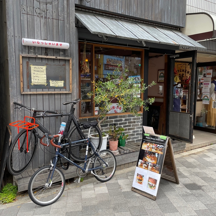 Route66のハンバーガーは、こだわり気質の間借り店主日比野さんが、一人でブロック肉から綺麗にトリミングして大ぶりにハンドチョップした他にないステーキ食感の肉肉しいパティが自慢のアメリカンバーガーです。通常のハンバーガー店ではフライドポテトがつけあわせてとして付きますがここではやはりブロック肉から落としたスジ肉を使用しており、肉好きにはたまらないバーガー店です。