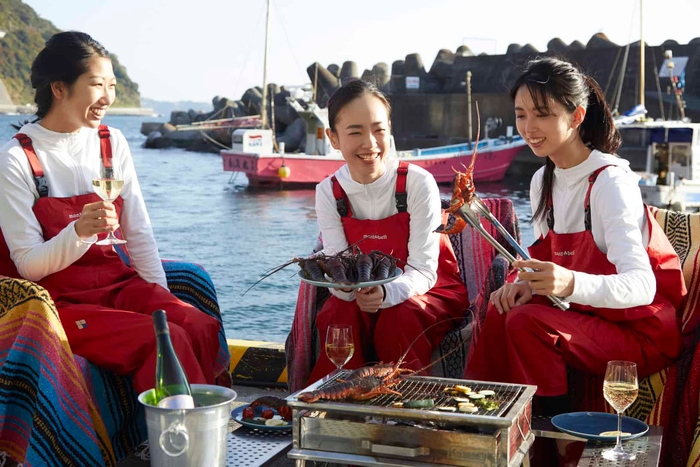 漁ガールステイは、普段は挑戦する機会のない漁を、当ホテルのサポートによって初めての方でも挑戦しやすくした宿泊プランです。漁に向けた心と身体の準備をサポートするのはもちろん、漁体験中のウェアや漁の後に行うバーベキューの設えを、可愛らしいデザインのもので揃え、女性も親しみを持てるようにしています。気候が良く、イセエビを獲ることができる春の熱海で、身も心も「漁ガール」になり、充実した休日を過ごすことができます。