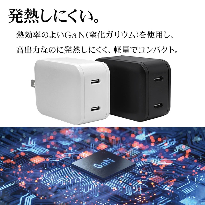 高出力かつコンパクトで発熱を抑える、GaN ICを採用したAC充電器です。