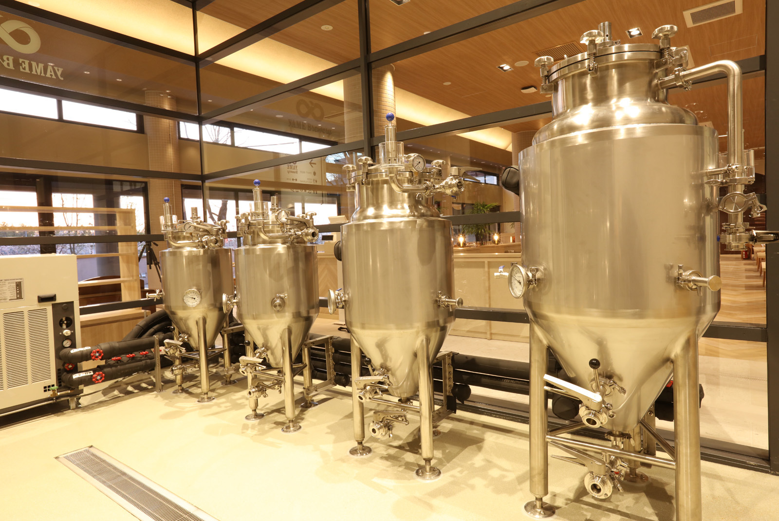 施設内レストランやカフェにて、八女ブルワリーのクラフトビールをお楽しみいただくことができ、セレクトショップにてご購入いただくことも可能です。