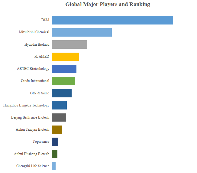 QYResearchのトップ企業研究センターによると、アルブチンの世界的な主要製造業者には、DSM、Mitsubishi Chemical、Hyundai Bioland、PLAMED、ARTEC Biotechology、Croda International、GfN & Selco、Hangzhou Lingeba Technology、Beijing Brilliance Biotech、Anhui Tianyin Biotechなどが含まれている。2022年、世界のトップ5企業は売上の観点から約57.0%の市場シェアを持っていた。